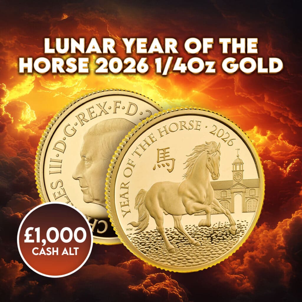 DRAW 10th Feb 9pmDaysHrsMinsSecsLunar Year Of The Horse 2026 1/4oz Gold Proof Coin Or £1,000 Cash