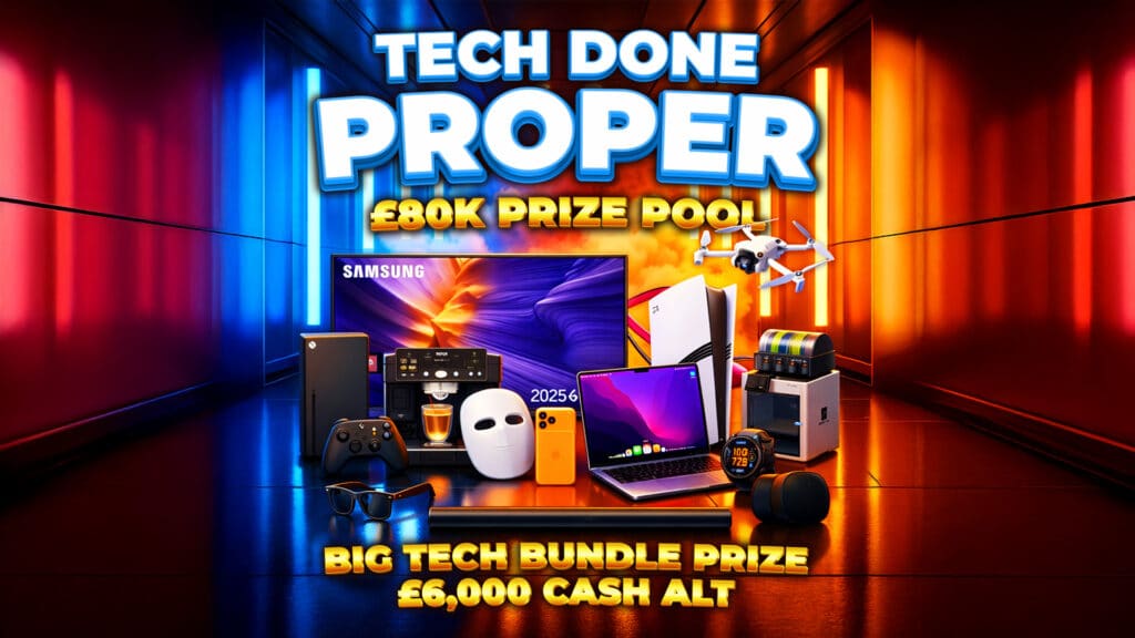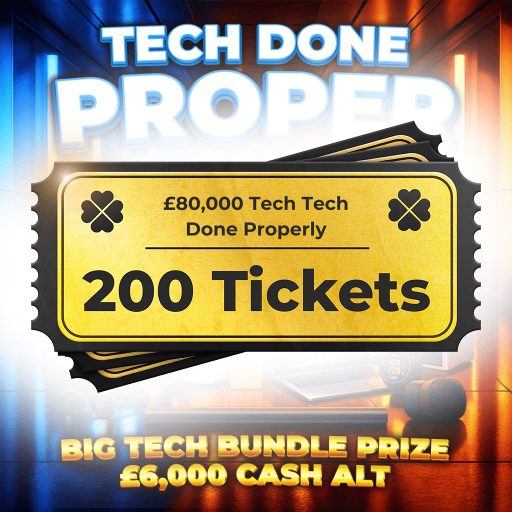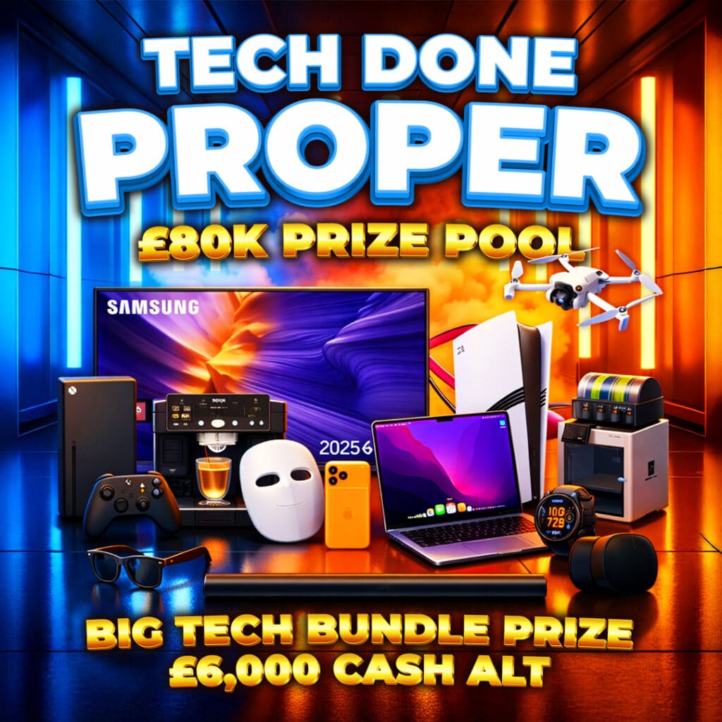 DRAW 17th Feb 9pmDaysHrsMinsSecs£80,000 Tech Done Proper - £8K Tech Bundle Main Prize Or £6K Cash