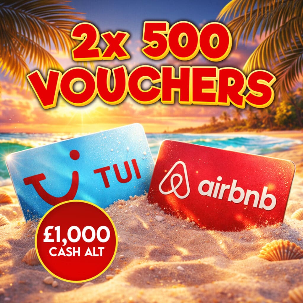 DRAW 10th Feb 9pmDaysHrsMinsSecs£500 Tui + £500 AirBnB Vouchers (Or £1,000 Cash)
