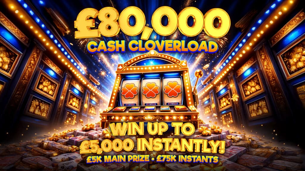 DRAW 31st Mar 9pmDaysHrsMinsSecs£80k Cash Cloverload (£5000 Main Prize + £75,000 Of Instants)
