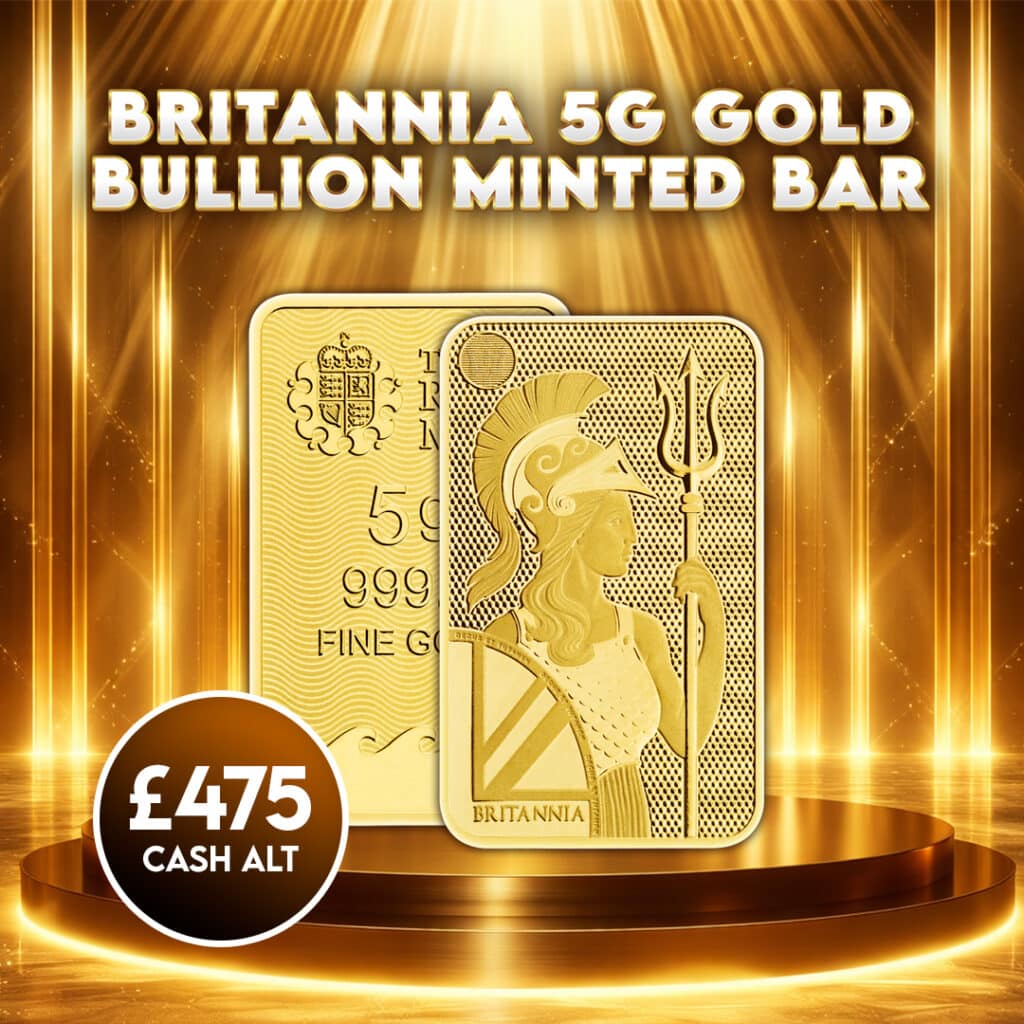 DRAW 14th Apr 9pmDaysHrsMinsSecsBritannia 5g Gold Bullion Minted Bar Or £475 Cash