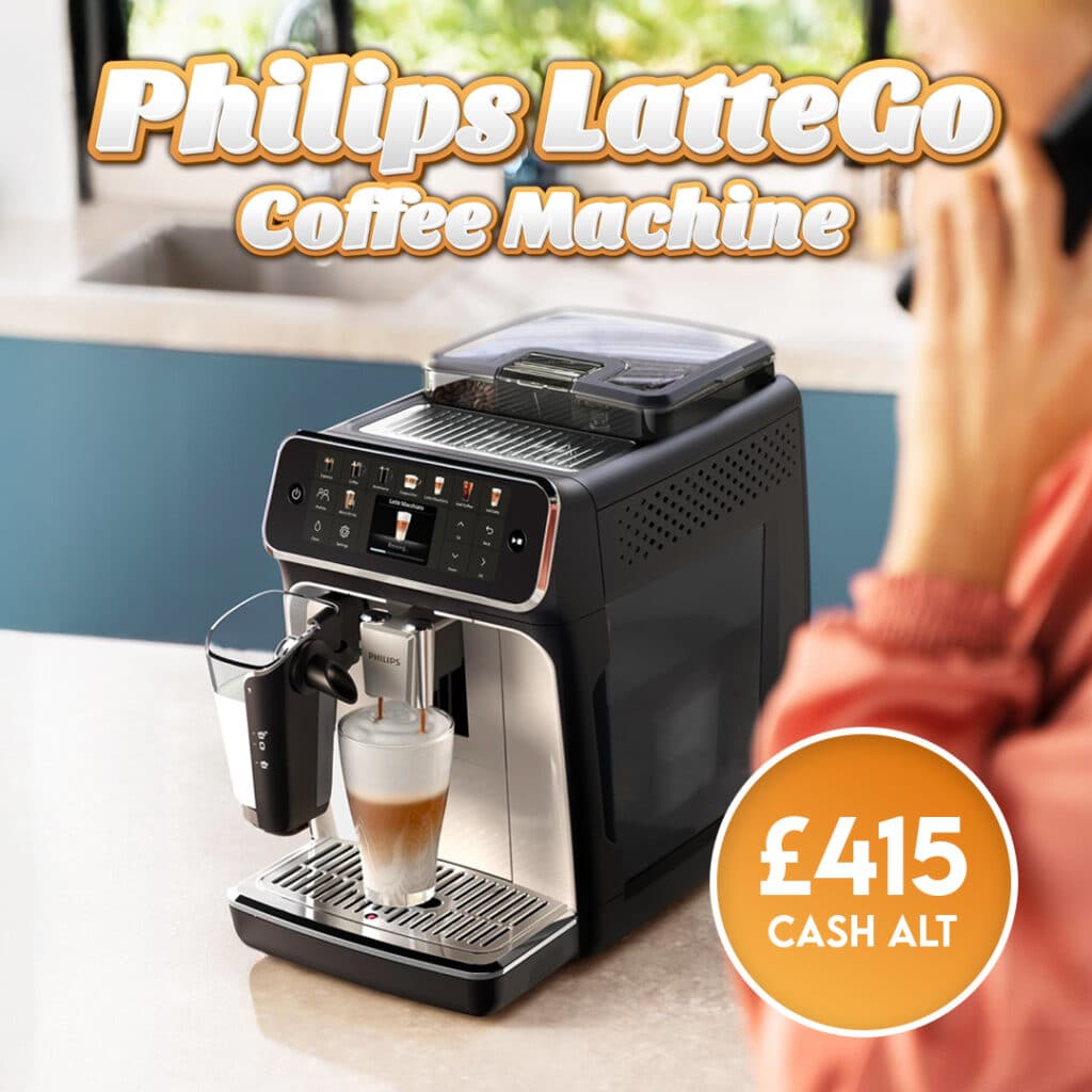DRAW 14th Apr 9pmDaysHrsMinsSecsPhilips LatteGo Coffee Machine Or £415 Cash