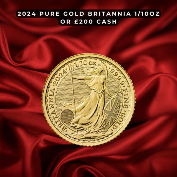 This Sunday you have the opportunity to win this incredible 2024 1/10th Britannia Gold Bullion or £200 Cash for as little as £2! Tune into our Facebook page live at 7pm to see if you are our lucky winner – Good luck! 🧡💙