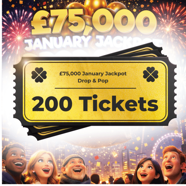 Grab 200 tickets into our Instant Win competition: £75,000 January Jackpot Drop & Pop. Worth almost £200!