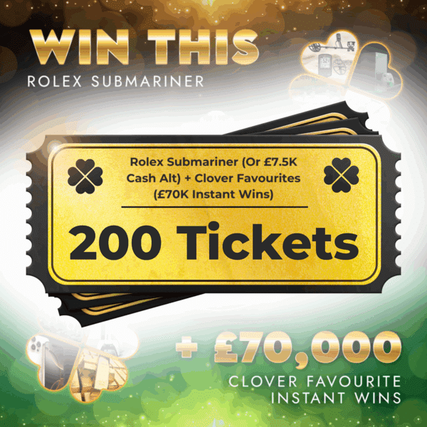 200 Tickets – Rolex Submariner + Clover Favourites (Or £7.5K Cash Alt) + £70K Instant Wins