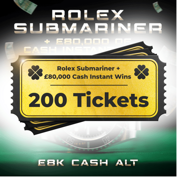 200 Tickets – Rolex Submariner (Or £8,000 Cash) + £80,000 Cash Instants