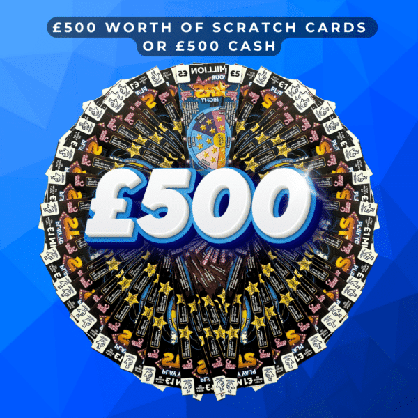 One lucky winner will pocket £500 worth of scratch cards and for those who don’t like to take a risk – there is a like-for-like £500 cash alternative up for grabs!