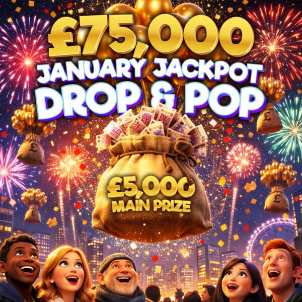 Welcome to the £75,000 January Jackpot Drop & Pop – a heavyweight cash comp stacked with huge instant wins, Drop & Pop Lots, and a £5,000 cash main prize waiting at the end.